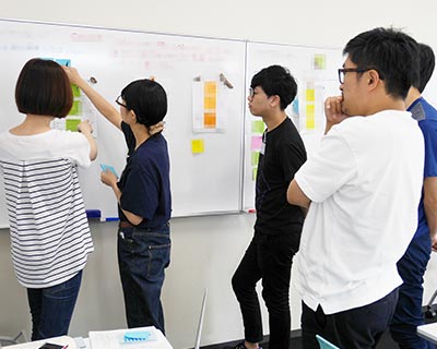 当初は、社内にデザインスプリントの経験者が非常に少なかったため、そのノウハウを学ぶために、 「デザインスプリント ―プロダクトを成功に導く短期集中実践ガイド」の監訳者でもある、 株式会社エクサの安藤幸央さんを講師としてお招きし、体験型のワークショップを行いました。