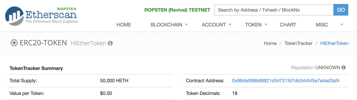 HiEtherToken: 0x99da589b68821d54721fd7db344bf5e7a4ad3af4