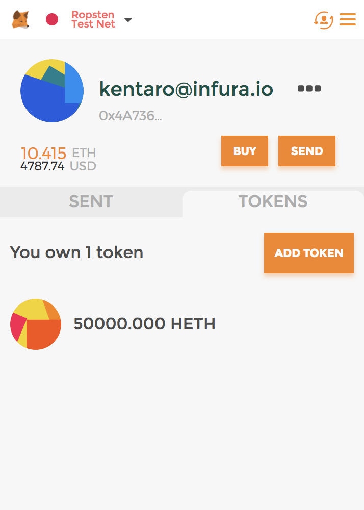 ChromeのMetaMask拡張で、トークンが自分のアドレスに付与されたかを確認してみましょう。