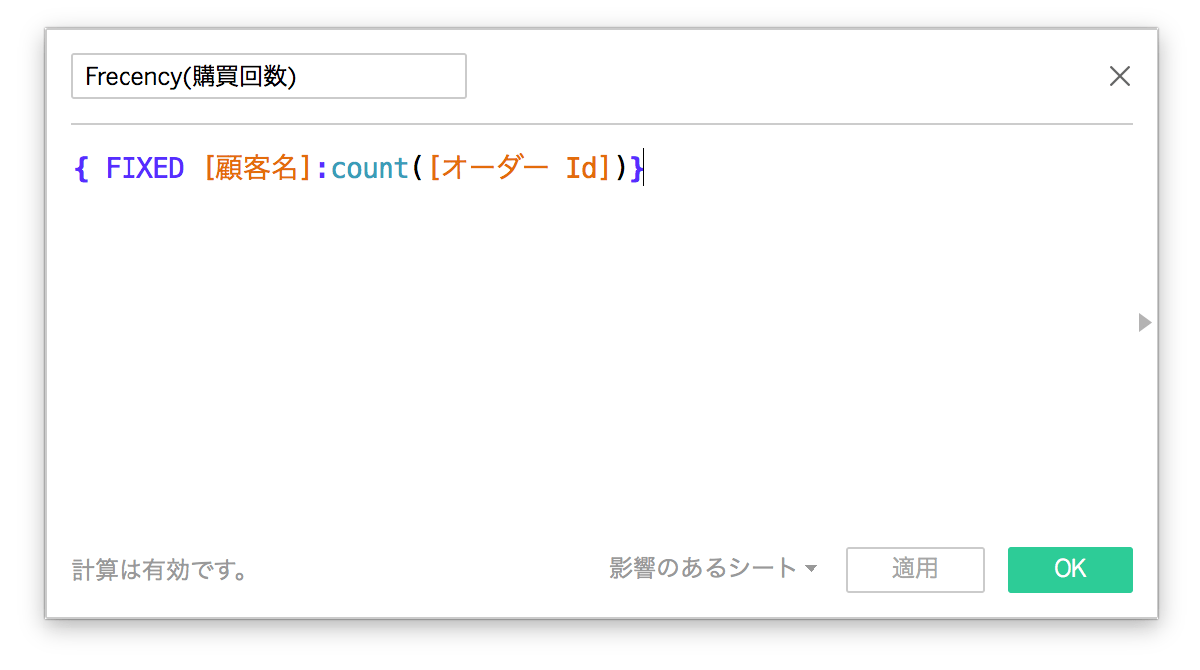 FIXED関数を使って顧客毎にオーダIDをカウントします。