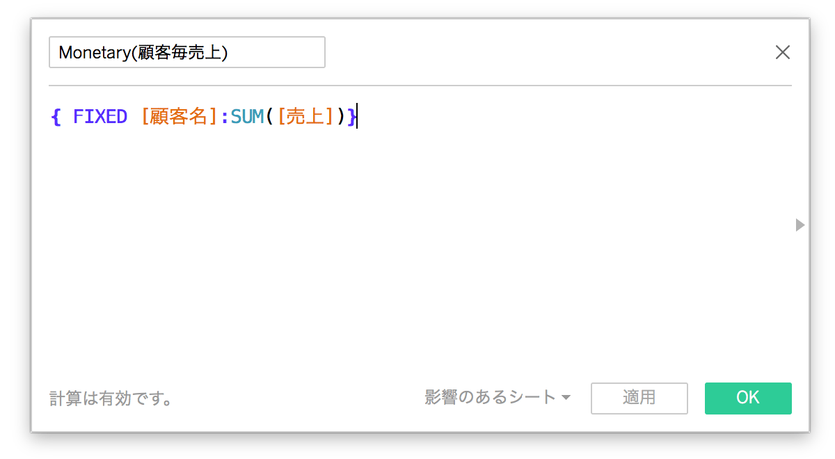 他と同様にFIXED関数を使って顧客毎の売上を集計します。
