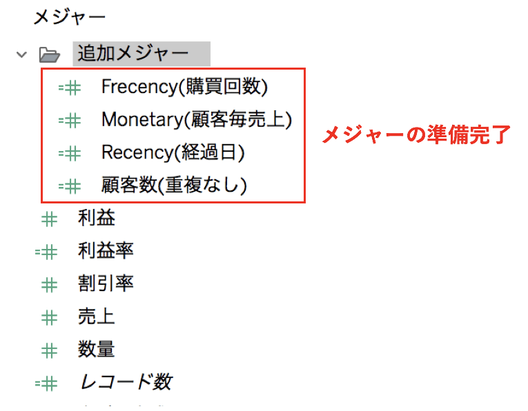 RecncyとFrequencyとカウント用のメジャーを配置!