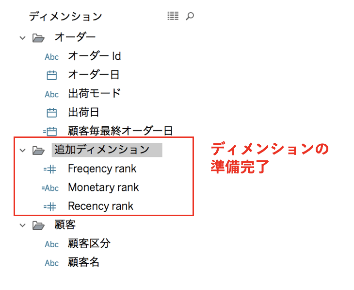 追加したメジャーからディメンションを作成