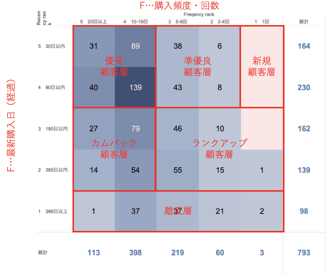 - F: Frequency 購買頻度・回数