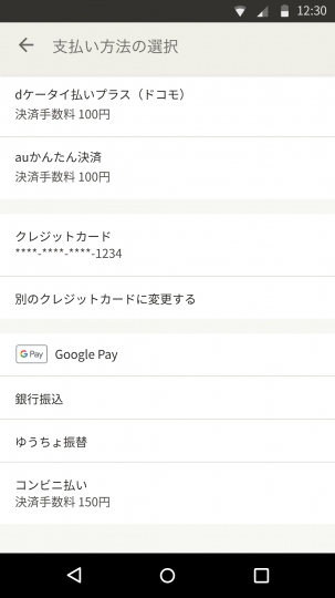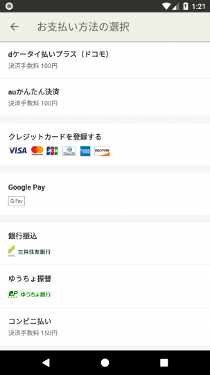 ガイドラインに沿って Google Pay のロゴを支払い方法として表示する際に、既存の選択画面でロゴを表示すると唐突な印象を受けてしまいました。そのためデザイナーの 鹿さんに全面的に相談に乗っていただき、レイアウトを以下のように変更しています。