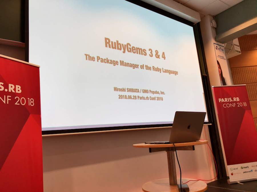 2018年6月28-29日にフランスのパリにて Ruby の地域コミュニティ Paris.rb の主催による技術カンファレンス Paris.rb Conf 2018 が開催され、私 @hsbt が「RubyGems 3 & 4」というタイトルで発表しました。カンファレンス当日までの流れや発表内容についてご紹介します。