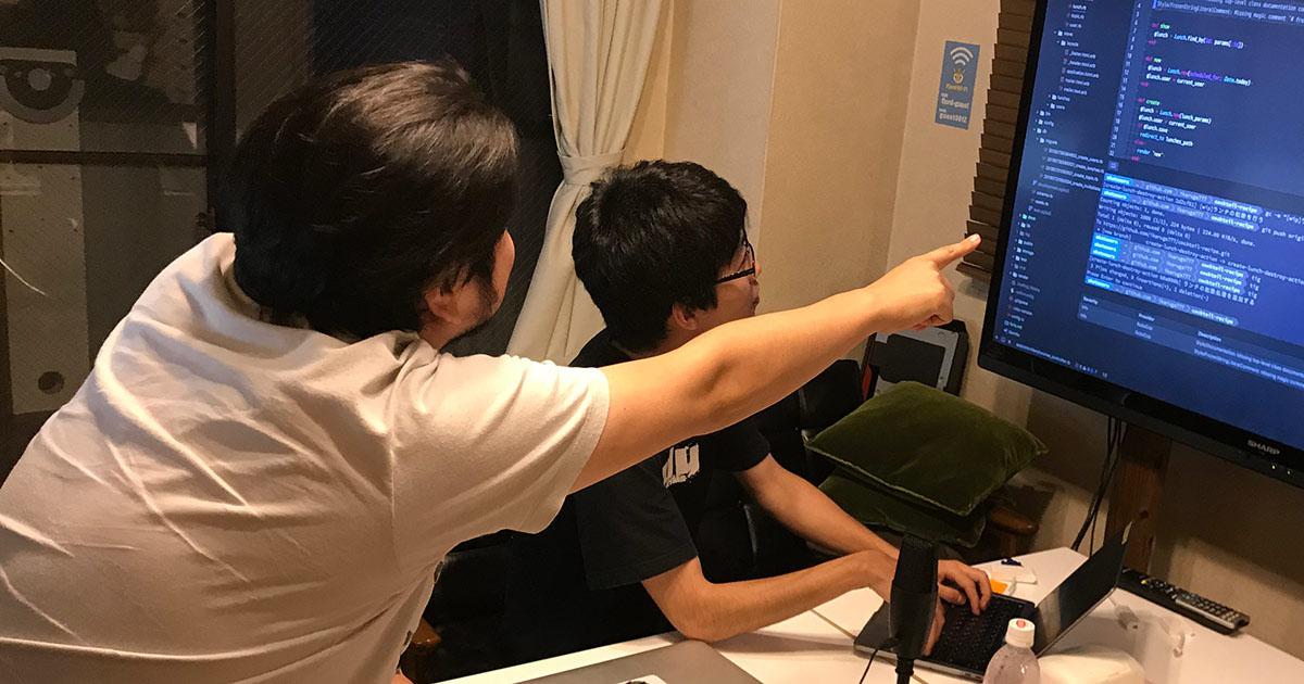 メンターとして、フィヨルドの駒形さん(@komagata)と町田さん(@machida)、そして弊社からはけんちゃんさん(@kenchan)、じゅーんさん(@june29)、やまちゃんさん(@kymmt90)も加わり、設計やコードについて相談にのって頂いたり、コードレビューをお願いしました。