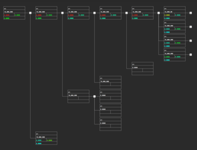 例として、ハンドメイドマーケット「minne」の KPI ツリーは、KGI から KGI を生み出す各セッションの流入元までを遡ることができ、すべて展開すると約400ノードに上る詳細なデータを確認することが可能です。