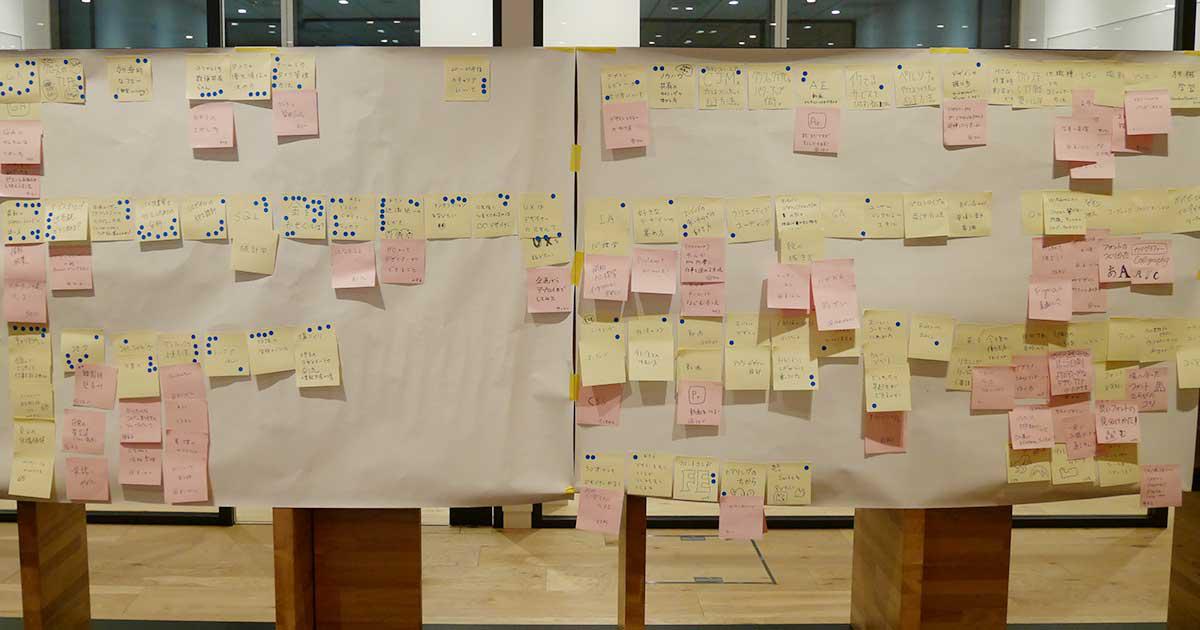 最後に、全員の付箋を整理しながら貼り出して、ワークショップを終了しました。