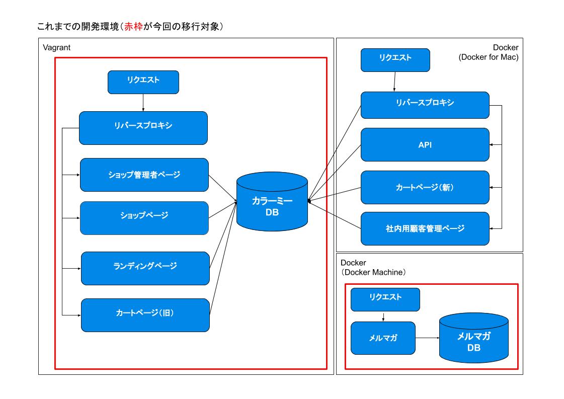 カラーミーショップの中核を担うページはPHPで動作しており、その開発環境はこれまでVagrantが使用されておりました。 一部すでにDockerを使用しているロールもありましたが、Vagrant内のデータを参照するようになっているなど、Vagrant依存の構成となっておりました。