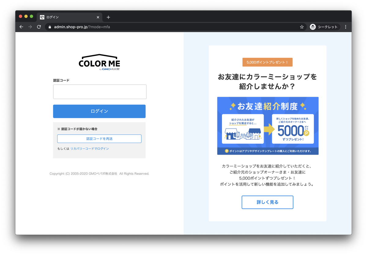 以降の文中では、カラーミーショップの管理者ページのことを、そのサブドメインからadminと呼び、2要素認証のことを2FAと呼びます。