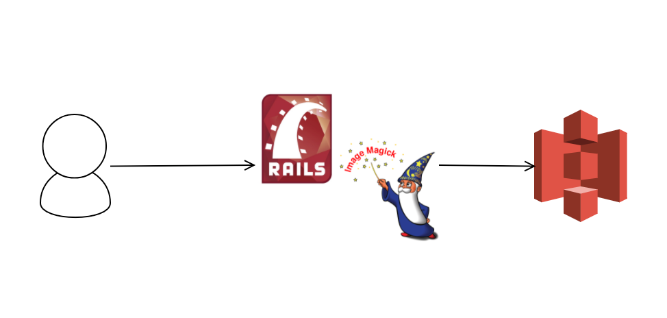 minne に作品画像がアップロードされた際の仕組みは下記のようになります。minne は Rails を使用して構成されているのですが、アップロードされたオリジナルの画像と決められたサイズに ImageMagick を使用してリサイズした数パターンの画像を S3 にアップロードしています。