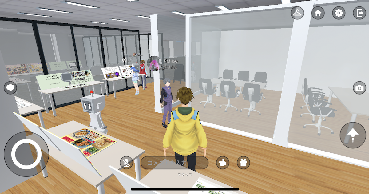 観覧者の方には好きなタイミングでclusterのアプリからペパボバーチャルオフィスに入ってもらい、アバターとなって自由に見て回るようにしました。