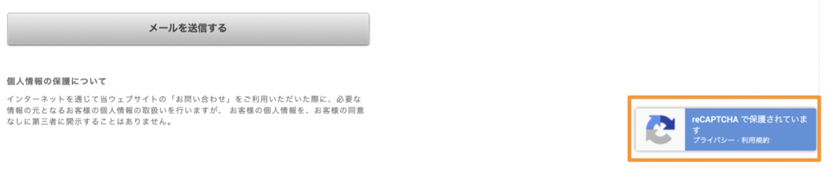 r.goope.jpでホームページを公開されている場合は、お問い合わせフォームには自動でreCAPTCHAのチェックボックスが表示されます。前述したreCAPTCHAのサイトキーとシークレットキーはドメインに紐づくもので、予めgoope.jpで発行したものを使っているからです。