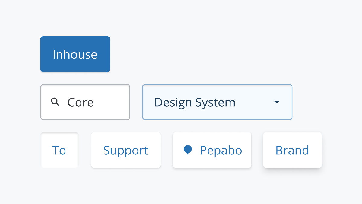 そこで、ペパボでは、各サービスが個別に考えていているようなデザインの原則やガイドライン、その実装としてのカラーパレットやコンポーネントライブラリなどのアセットのうち、重複しているものをすべてのサービスで使えるように一般化した、共通基盤デザインシステムを開発することにしました。ペパボでは、この共通基盤デザインシステムに「Inhouse」という名前をつけて呼んでいます。