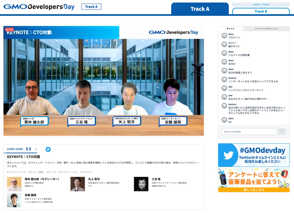 ホスティング事業部SREチームの @takumakume です。 このセッションでは、GMOインターネットグループのエンジニア3名によるパネルセッションです。