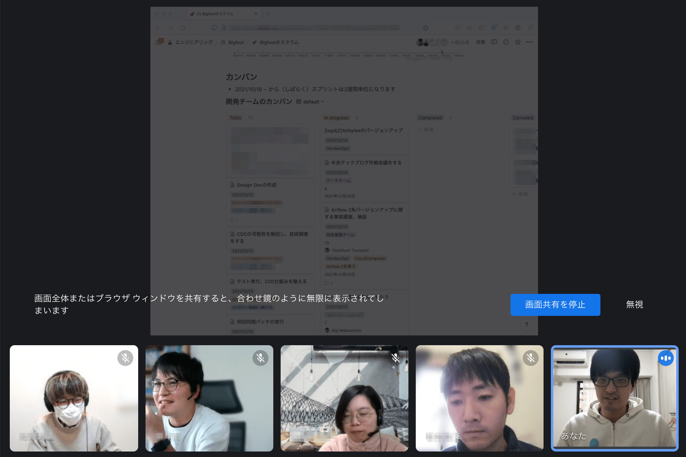 現在、データ基盤チームは @komatun がジョインし5名のチームになり、来年も増員が予定されています。スクラムのチームとして少し大きくなってきましたが、引き続き生産性をキープすべく様々な工夫を取り入れたいと考えています。