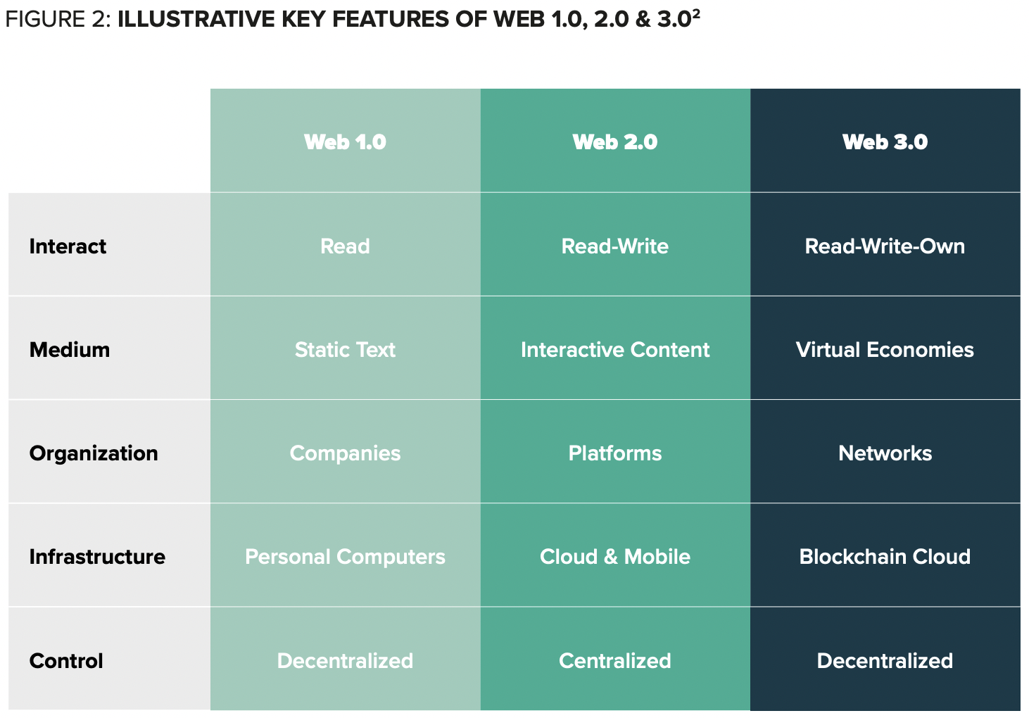ところで、Web3というからにはWeb1とWeb2もあるはずです。それらとの比較においては、どういうことがいわれているのでしょうか。シリコンバレーの代表的なベンチャー・キャピタルであるAndreessen Horowitzによるブログに掲載された記事を見てみましょう。