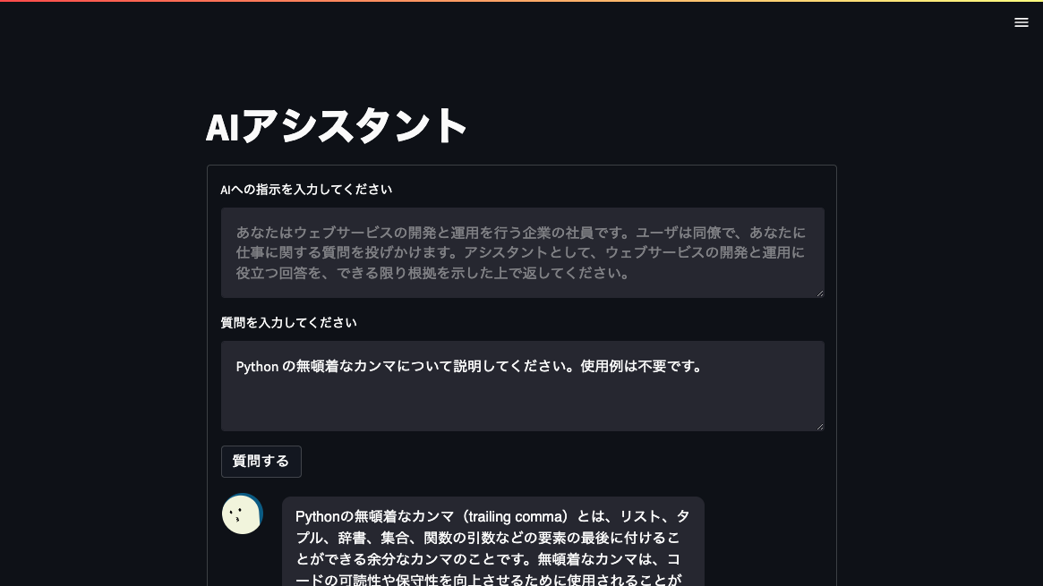 - ウェブサービスの運用・開発アシスタントとして振る舞う(プロンプトは変更可能)