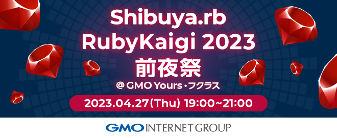 今年もRubyKaigiの季節がやってきましたね。GMOインターネットグループは、昨年と同様Video Sponserとして協賛し、当日の配信や開催後に公開される動画の編集等のお手伝いをさせていただいています。また、4/27にはShibuya.rb RubyKaigi 2023 前夜祭 @ GMO Yours・フクラスを開催し、RubyKaigi 2023の開催に向けてRubyistのみなさんの気持ちを盛り上げていきたいと考えています!