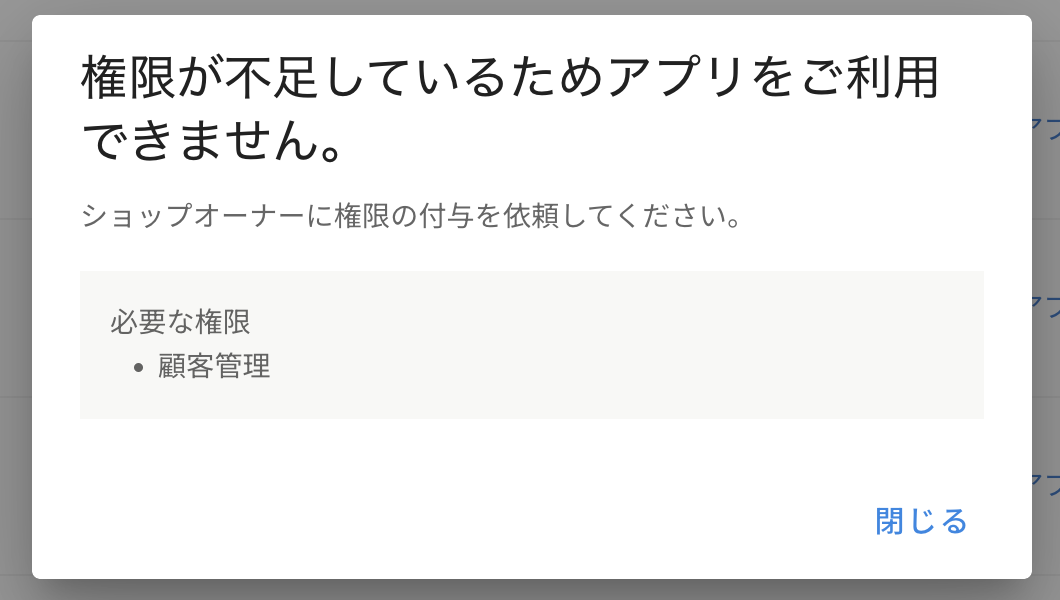 この問題を解決するために、リソースについての権限に加えて、ショップオーナーによって明示的にアプリに対する権限が割り当てられるまで副管理者が当該アプリを使えないようにできる仕組みを導入しました。この権限はデフォルトで無効にしており、アプリをショップへの意図しない課金を防ぐようになっています。