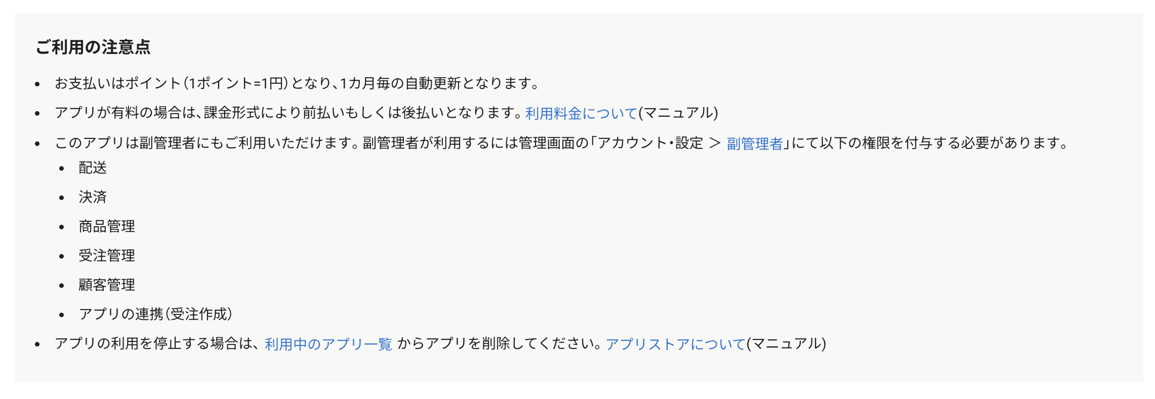 2023年6月7日に、カラーミーショップでショップの副管理者が一部のアプリストア アプリを利用できる機能の提供を開始しました。