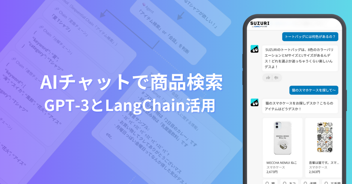 こんにちは!先日、オリジナルグッズ作成・販売サービスの「SUZURI」で『スリスリAIチャット(β)』を開発・リリースしました。LLMを活用してチャットベースのUIで好みのアイテムを探すことができる機能になります。また、LLMが自然な会話を得意としていることから、SUZURIキャラクターのスリスリくんと雑談をすることもできます。