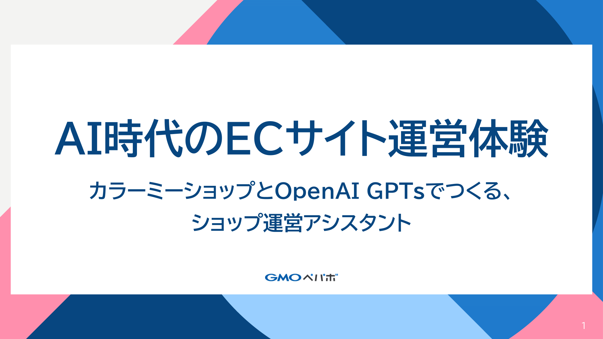 今回は、昨年提供を開始した生成AIに関連する機能とは少し違う、生成AIとカラーミーショップの使い方について説明します。 OpenAI GPTsとカラーミーショップAPIを組み合わせて作成できる、ショップ運営アシスタントの紹介です。1