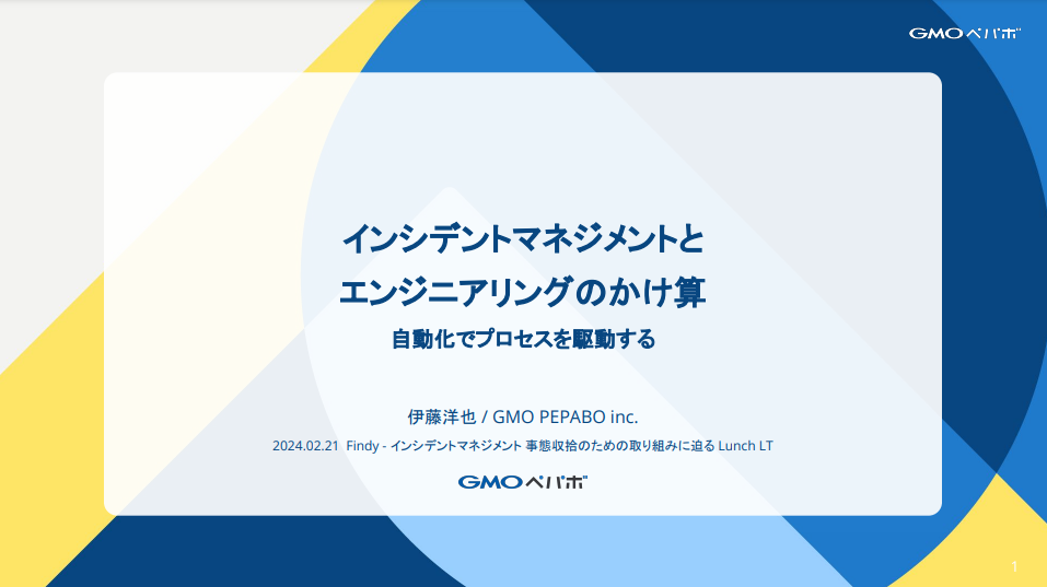 GMO ペパボの インシデントマネジメント 1 をテーマにした発表です。