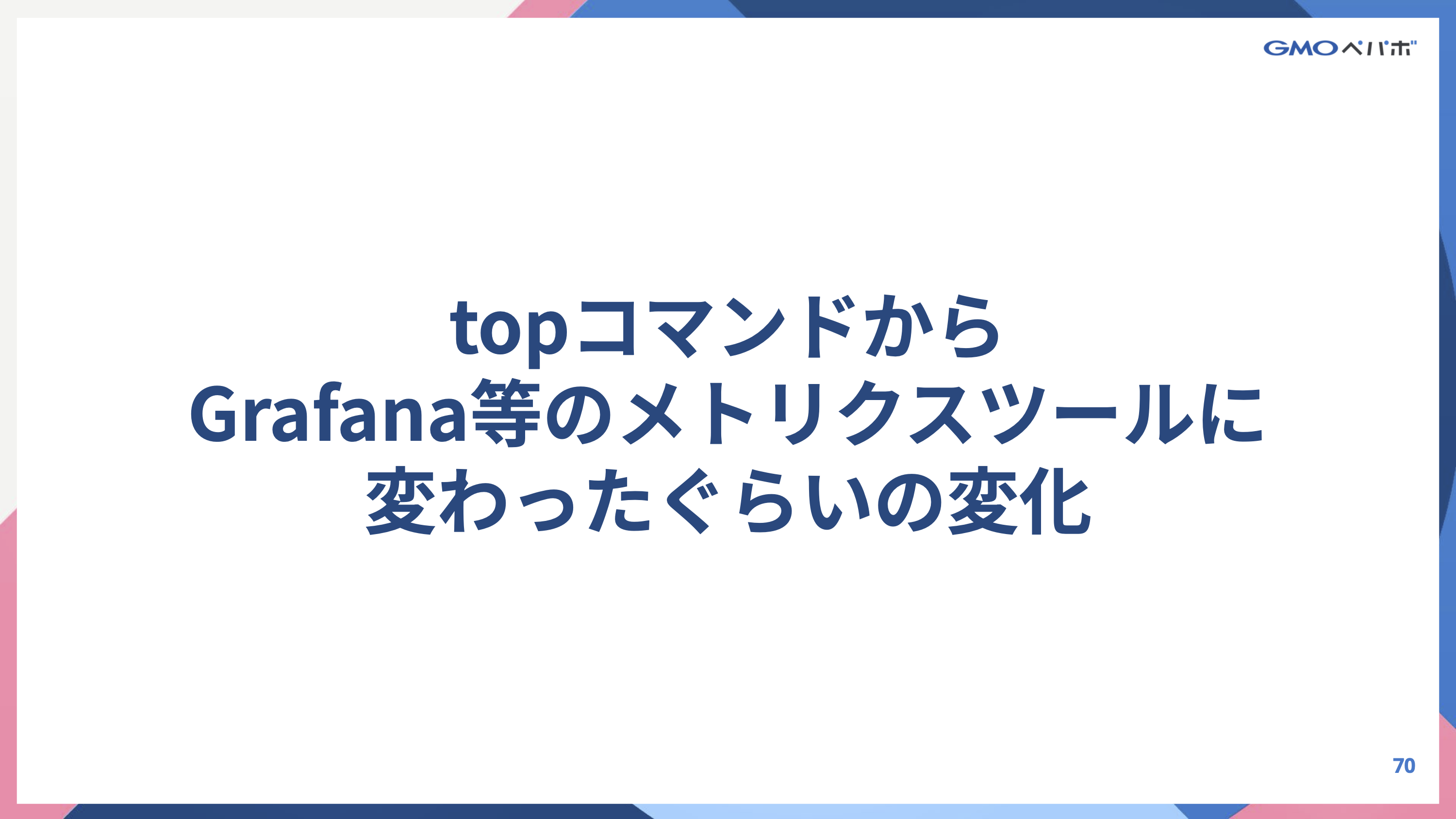 例として「今までの配信ソフトで見れていたステータス表示はtopコマンド、新たなステータス表示はGrafanaのようなメトリクスツールに変わった」や、「使用する機材をまとめ、電源を挿し込むと必要なコンポーネントが一気に立ち上がるようにしたので、これは実質docker compose up」など、要所要所でSREなら「なるほど〜!」と思える置き換えを意識して発表をしました。
