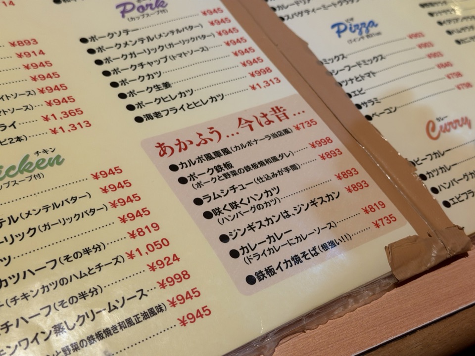 通称「赤風」。今回の下見で初めてお店の存在を知ったのですが、なかなかインパクトがあるお店でした。メニューが豊富で、ハンバーグやパスタなどの洋食メニューは一通り揃っています。30時までやっているので、いつ行っても安心ですね(寝坊には気をつけましょう)。
