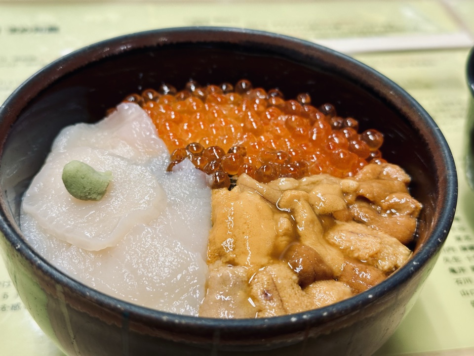 函館駅周辺に宿泊されている方々は朝食として朝市の海鮮丼はいかがでしょうか。函館の観光地としては定番で、朝から営業しているお店が多く、何を食べても外れはなさそうです。私が行ったのはきくよ食堂で、うに・いくら・ほたての三色が丼を埋め尽くす元祖 函館巴丼はインパクトがあります。